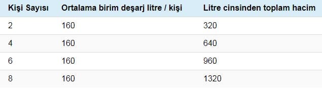 Genellikle bir tesiste kullanılan suyun % 95’i kanalizasyona girer. Aşağıdaki tablo, küçük bir aile tarafından ne kadar atık oluşturulduğunu gösterir.